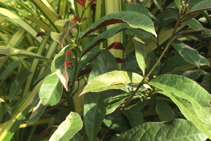 It is a plant species in the genus Excoecaria, which is a member of the family Euphorbiaceae. It is native to Southeast Asia and China. it is a subtropical evergreen shrub with a woody stem, growing up to 1-2 m (3.3-6.6 ft) high. Its leaves are opposite, their texture shiny and papery, the upper surface dark green or variegated and the underside a deep maroon. The leaves measure 6-14 cm by 2-4 cm (2.4-5.5 in by 0.8-1.6 in). The common name of the blindness tree comes from Latin “excoecaria”, to make blind. Contact of sap in the eyes has been reported to cause blindness. The Latin name cochinchinensis derives from Cochinchina, an old name for Vietnam. it is typically used as a tropical ornamental, greenhouse, or house plant