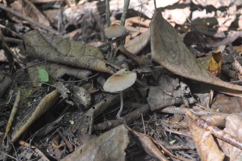 Lepiota cristata, commonly known as the stinking dapperling or the stinking parasol, is an agaric and possibly poisonous mushroom in the family Agaricaceae. A common and widespread species—one of the most widespread fungi in the genus Lepiota—it has been reported from Europe, northern Asia, North America, and New Zealand. It fruits on the ground in disturbed areas, such as lawns, path and road edges, parks, and gardens. The species produces fruit bodies characterized by the flat, reddish-brown concentric scales on the caps, and an unpleasant odour resembling burnt rubber. Similar Lepiota species can sometimes be distinguished from L. cristata by differences in cap colour, stipe structure, or odour, although some species can only be reliably distinguished through the use of microscopy.